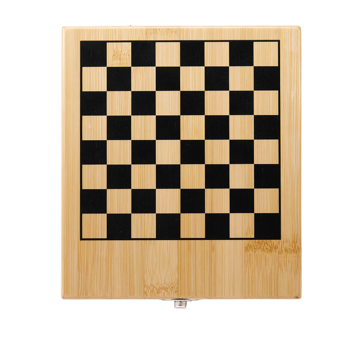 Fabricado en bambú, ideal para los amantes del juego estratégico que valoran la practicidad y el diseño. Incluye 32 piezas en dos tonos de madera (oscuro y claro), perfectamente proporcionadas y almacenables dentro de su propio estuche. El tablero está impreso directamente sobre la tapa del estuche, lo que permite jugar cómodamente y guardar todo con facilidad. Su broche metálico garantiza seguridad durante el transporte. La madera es un producto natural el cual puede presentar variaciones en tonalidades y vetas. Incluye caja Individual.