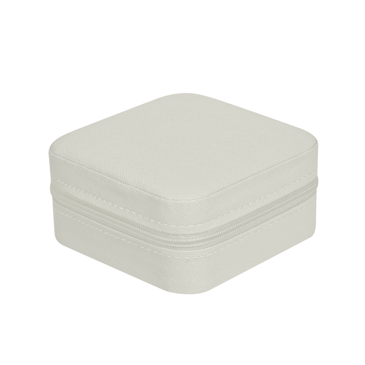 Alhajero con compartimento principal con cierre. Interior tipo terciopelo que protege la joyería de rayones y daños. Incluye 3 ganchos para collares, 6 ranuras para anillos, 1 bolsillo interior con elástico y 4 divisiones.
