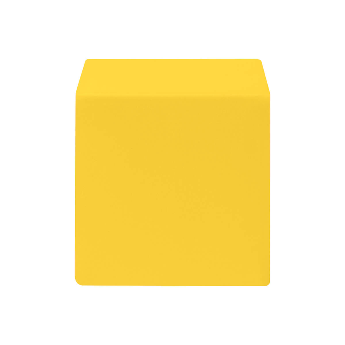 Figura antiestrés con forma de cubo. La superficie de cada lado puede presentar ligeras irregularidades.