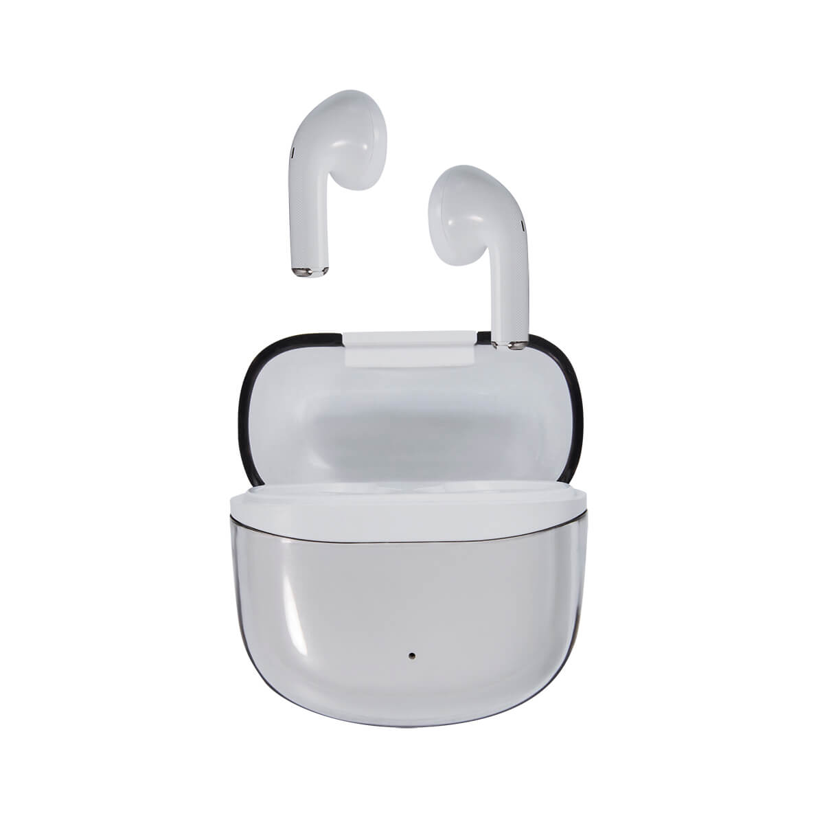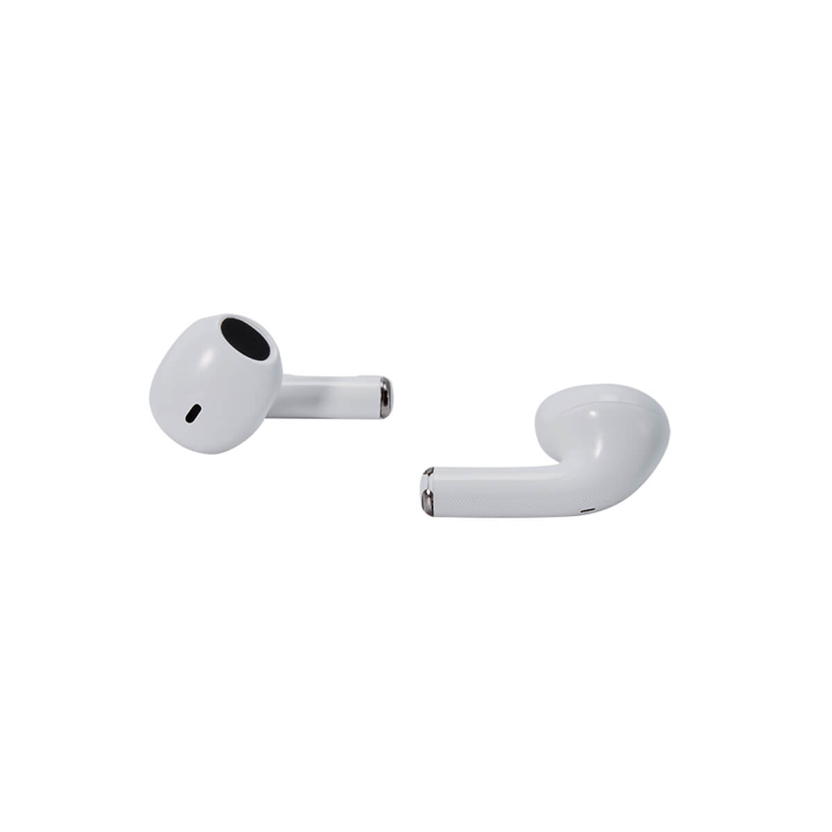 Audífonos bluetooth con base recargable. Controles integrados touch para llamadas, volumen y reproducción de audio. Reproducción de música 2 a 3 hrs aproximadamente. Rango de conexión de 10 metros. Incluye estuche de carga y cable cargador USB.