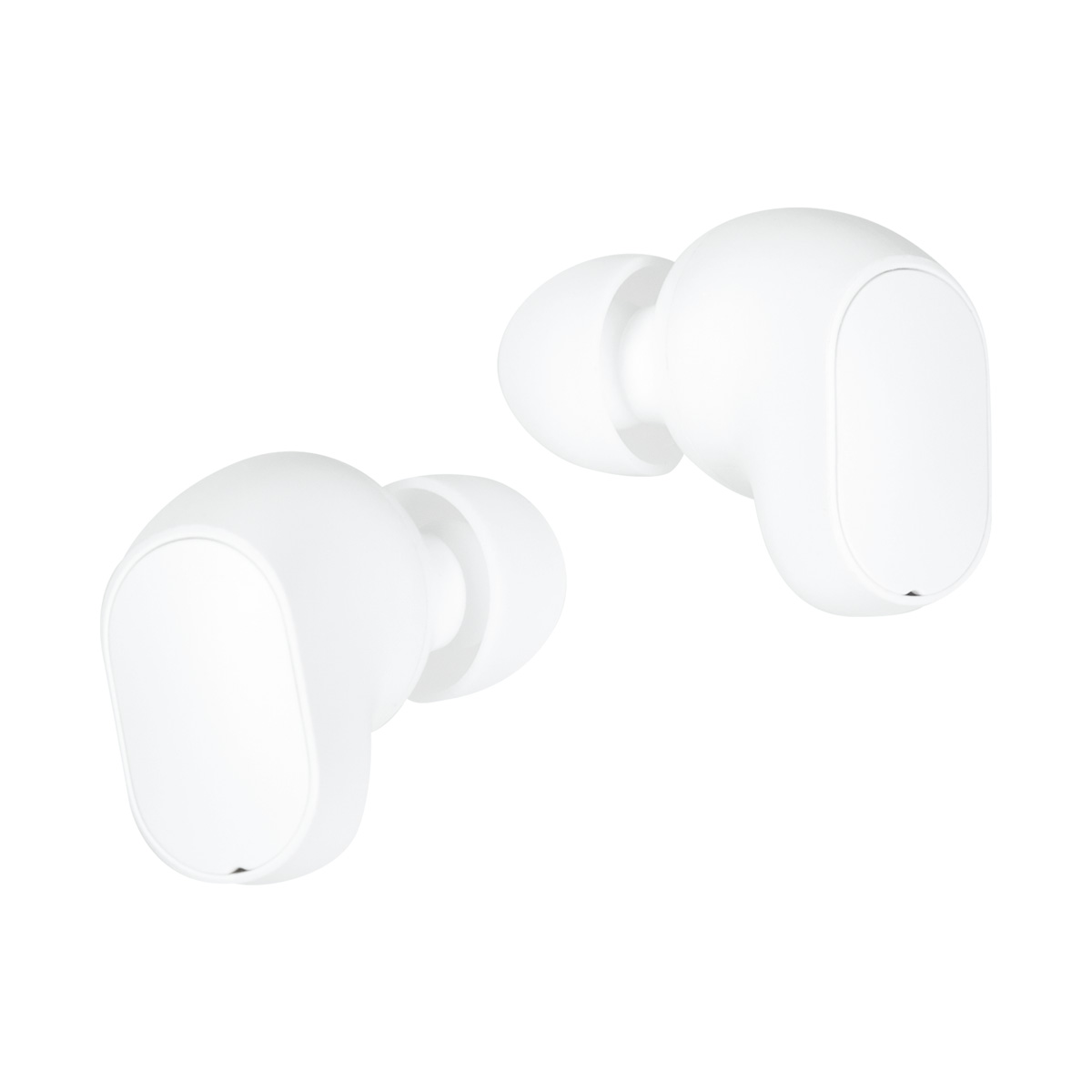 Audífonos bluetooth con base recargable. Controles integrados touch para llamadas, volumen y reproducción de audio. Reproducción de música de 4 hrs aproximadamente. Rango de conexión de 10 metros. Batería de 30 mAh en los auriculares y 300 mAh en el estuche de carga. Incluye cable cargador USB, estuche de carga con conexión tipo C y caja individual.