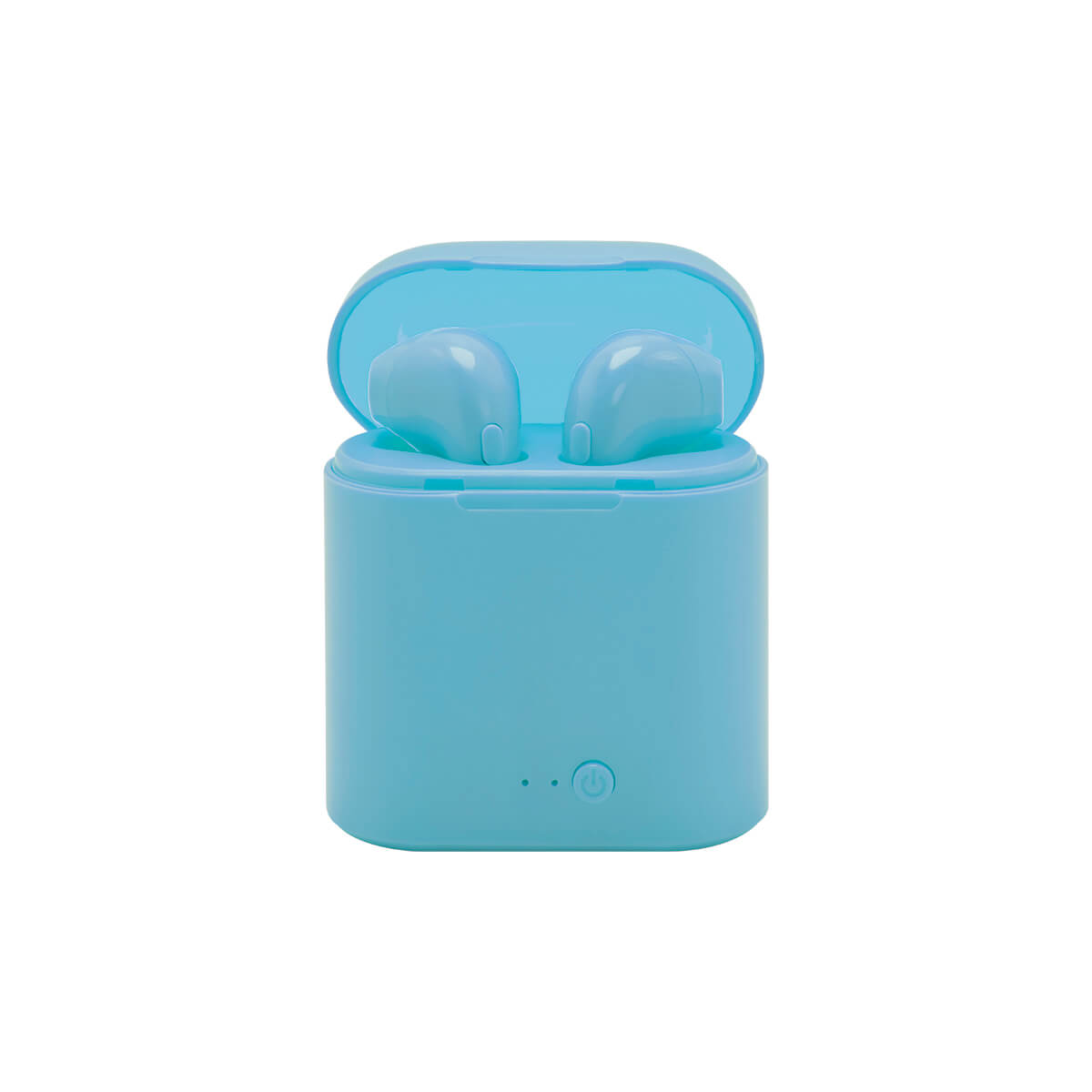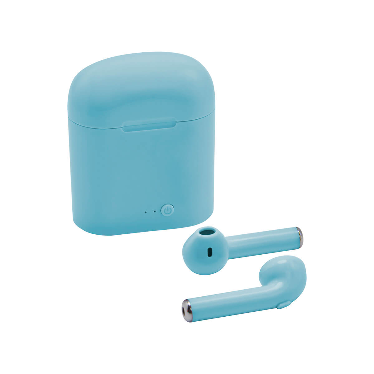Audífonos bluetooth inalámbricos con batería recargable. Función manos libres. Reproducción de música 2 hrs aproximadamente. Incluye estuche para recargar los audífonos y cable cargador USB.