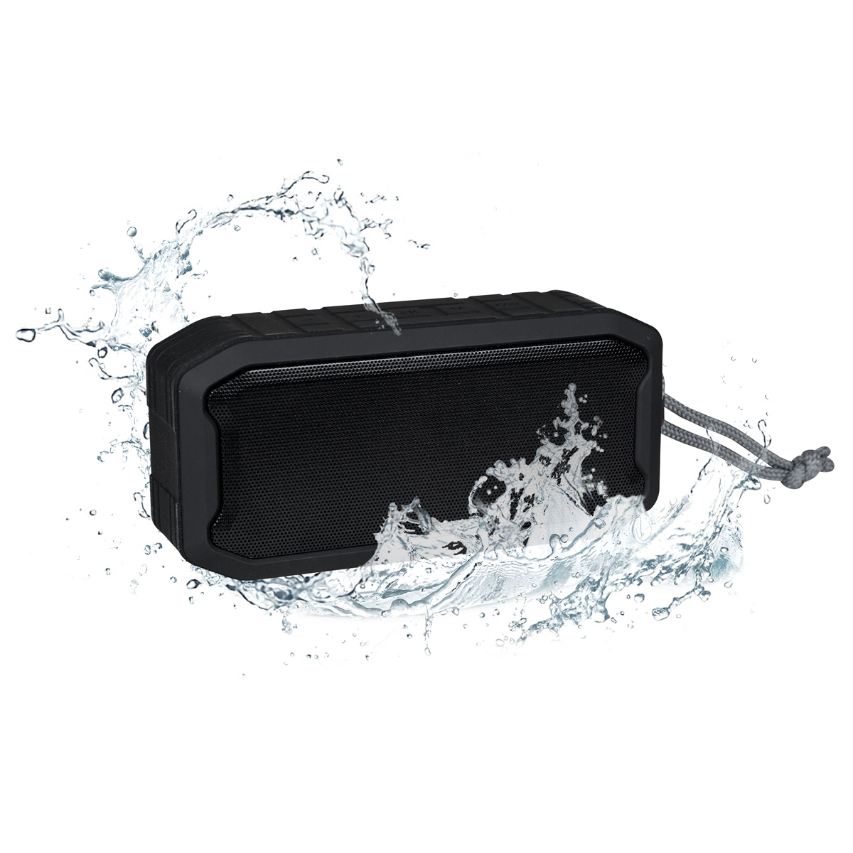 Bocina IPX7 a prueba de agua, lo que permite sumergirla hasta 1 metro por un máximo de 30 minutos. Bocina con tecnología bluetooth 5.3. Potencia 5 W. Batería recargable con capacidad de 1,200 mAh que otorga un tiempo de reproducción de 3 a 4 horas. Alcance de conexión de 10 metros. Además, agrega controles integrados de llamada, función FM, puerto de conexión USB, micro USB, conexión para cable auxiliar 3.5 y ranura para tarjeta TF. Incluye cable con conector micro USB y caja individual.
