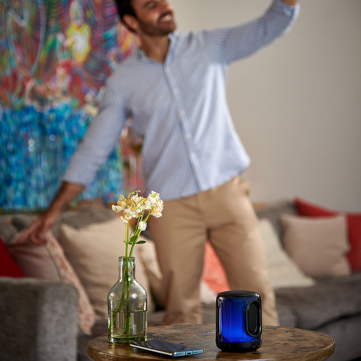 Bocina bluetooth recargable con luz RGB ajustable a 10 efectos diferentes. Reproducción de música 4 hrs aproximadamente. Rango de conexión 10 metros. Cuenta con puerto para tarjeta TF, puerto USB, puerto auxiliar 3.5 mm y puerto tipo C. Radio FM. Incluye cable cargador USB.