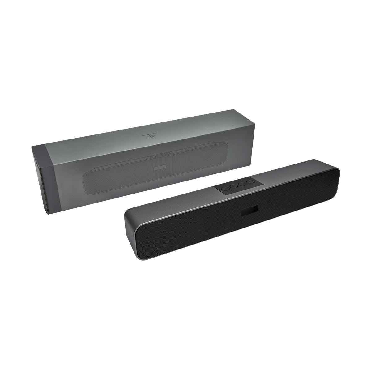 Bocina bluetooth con batería recargable. Tiempo de reproducción de 4 hrs aproximadamente. Controles integrados de volumen y reproducción de audio. Puerto para tarjeta TF. Incluye cable cargador USB.