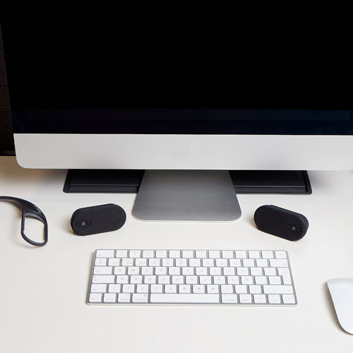 Bocinas bluetooth portátiles TWS con batería recargable. Reproducción de música 5 hrs aproximadamente. Función manos libres. Controles integrados de llamada, volumen y reproducción de audio. A prueba de salpicaduras. Bocinas desmontables para uso en espacios pequeños. Incluye collar y cable cargador USB.