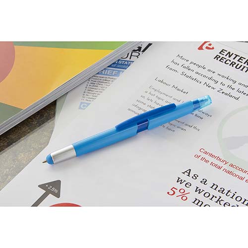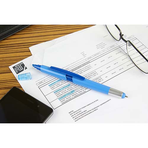 Bolígrafo con touch screen y marcatexto. Mecanismo pulsador.