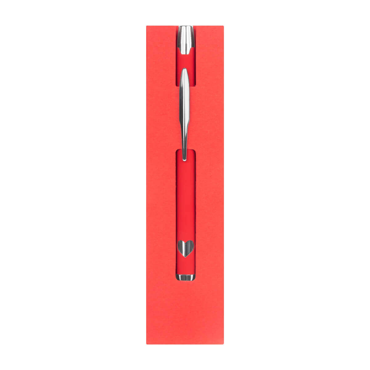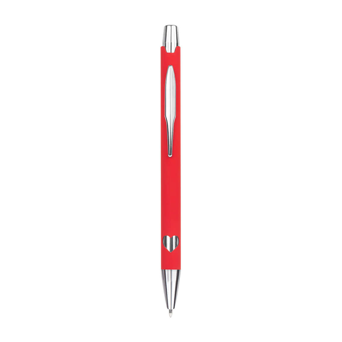 Bolígrafo metálico doble acabado mate en el cuerpo y detalles cromados con suaje en el cuerpo en forma de corazón. Mecanismo pulsador. Incluye funda con diseño.