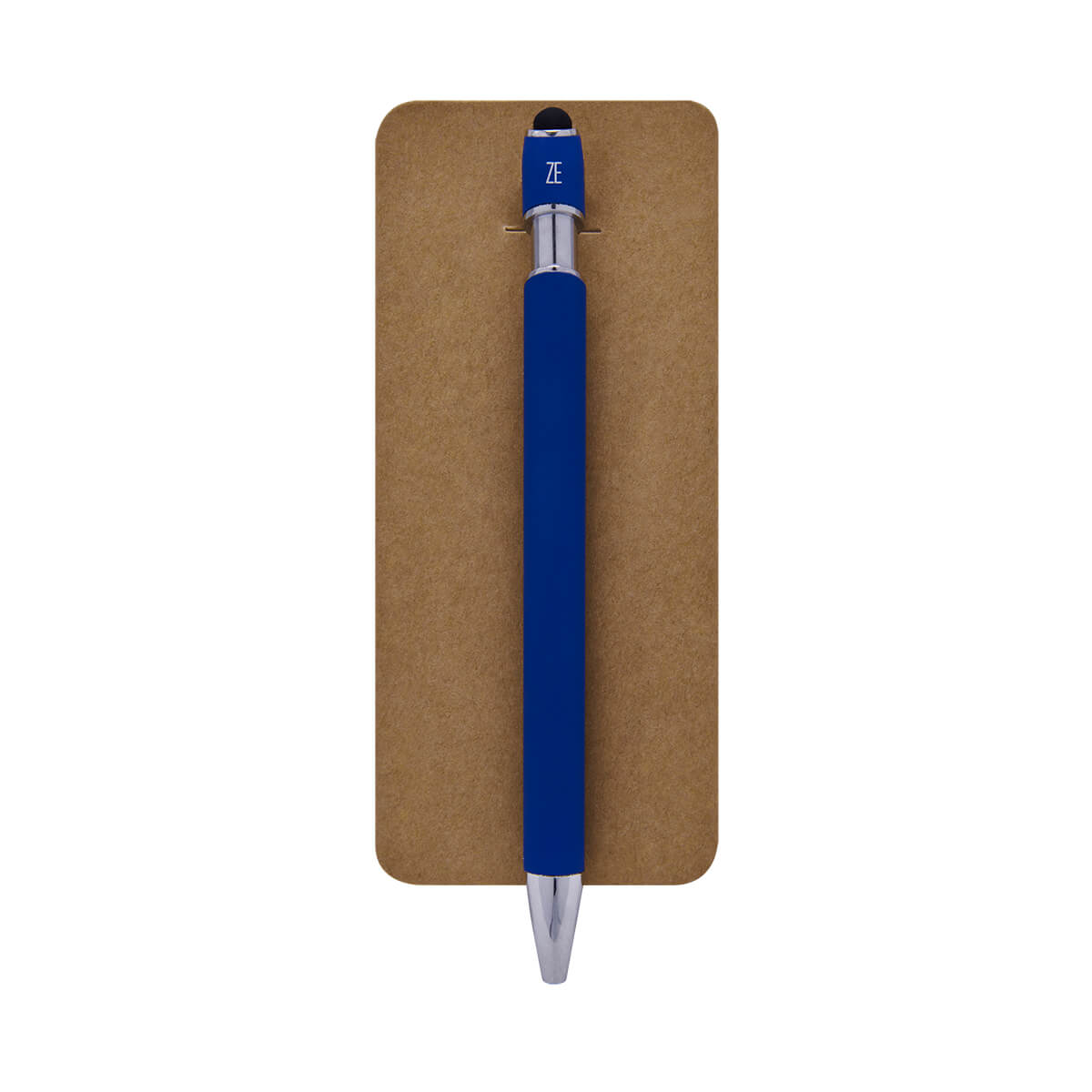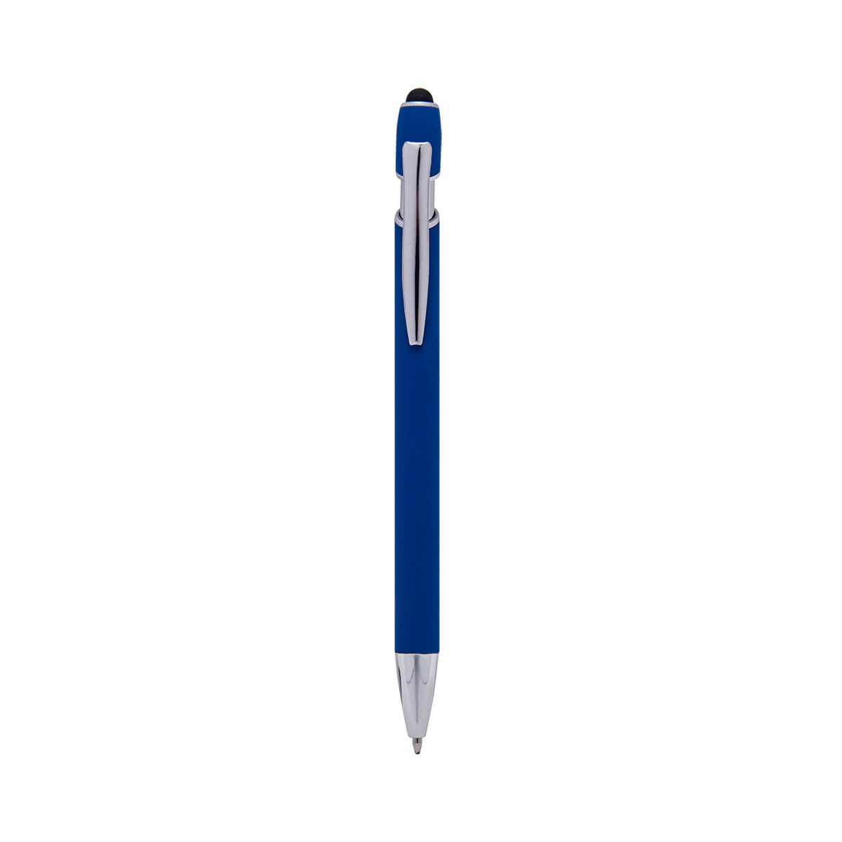 Bolígrafo con touch screen y terminado tipo rubber. Mecanismo pulsador. Incluye funda.