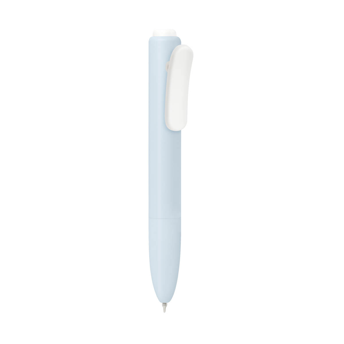 Bolígrafo de plástico con mecanismo pulsador. Su diseño destaca formas suaves y redondeadas. Agrega un clip con función de pinza que aporta un toque moderno y minimalista.