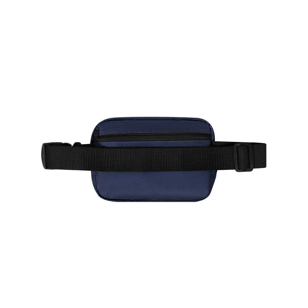Bolsa cangurera con correa ajustable y broche de plástico. Puede utilizarse como bolsa de hombro, a la cintura o al pecho. Incluye un bolsillo con cierre en la parte trasera para tener una mejor organización.