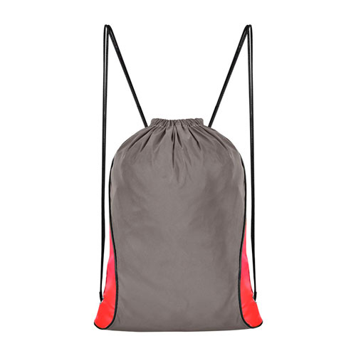 Bolsa-mochila con tirantes de cordón y cerrado de jareta. Parte frontal reflejante.