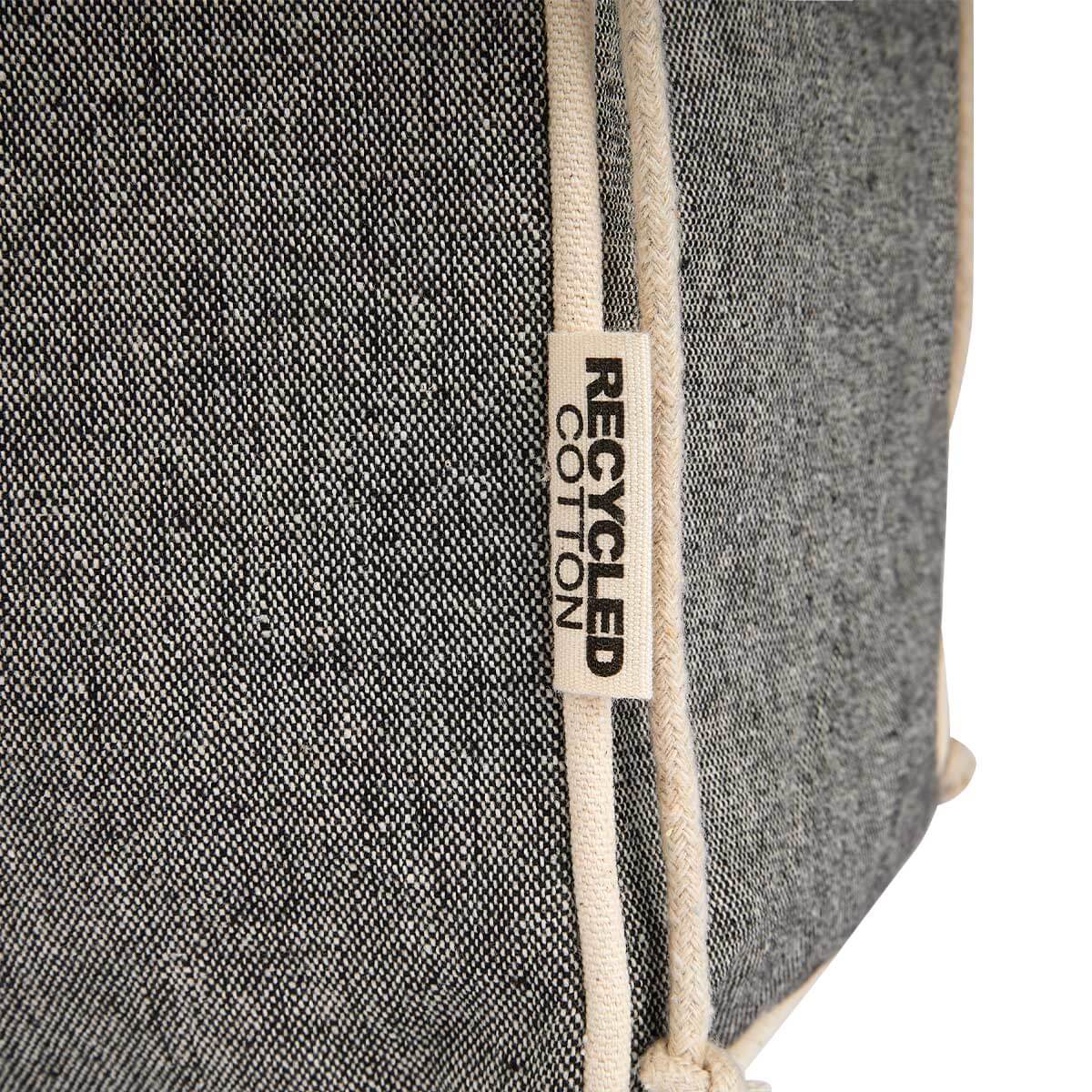 Bolsa ecológica de algodón reciclado. Incluye jaretas laterales ajustables y base con fuelle de cartón removible.