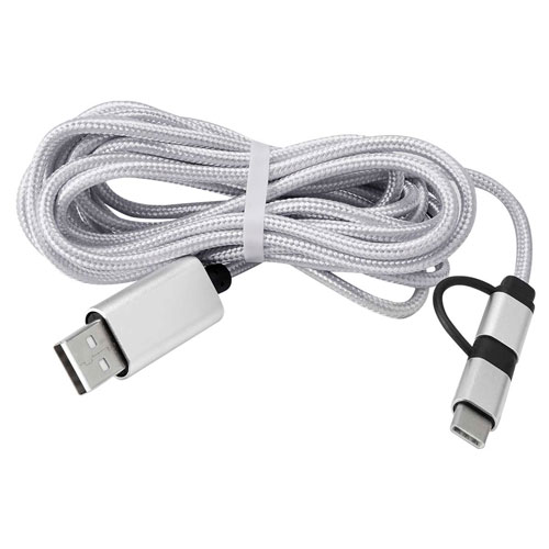 Cable cargador compatible con USB, 8 pin, micro USB y entrada tipo C. Longitud de cable 3m aproximadamente. Incluye estuche translúcido. Este producto por ser últimas piezas puede presentar alguna variación, no se aceptan devoluciones.