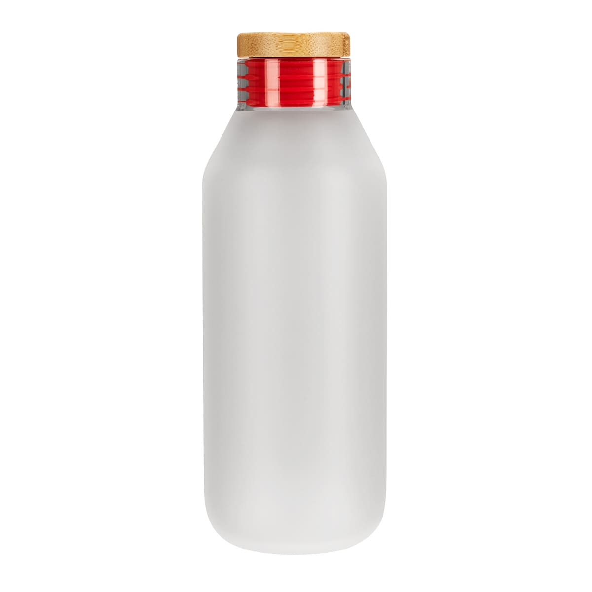 Cilindro de vidrio con terminado frosty. Tapa de bambú y sello de silicón de color. Incluye caja individual. El bambú es un producto natural el cual puede presentar variaciones en tonalidades y vetas.