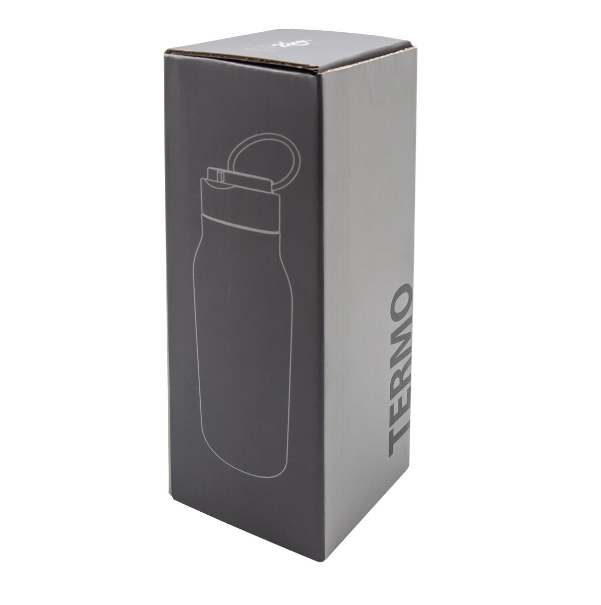 Cilindro metálico de una pared y tapa de plástico con cierre de rosca. Incluye aro metálico en la tapa que funciona como asa. Terminado mate. Incluye caja individual.