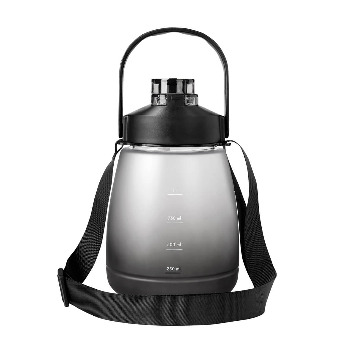 Tapa de plástico con cierre de rosca y boquilla, sobretapa push con botón de seguridad y asa plegable. Incluye asa de poliéster para transportarlo fácilmente. Cuerpo con terminado rubber que lo hace suave al tacto. Incluye indicador de mililitros para motivar y controlar tus hábitos de hidratación. Incluye popote y caja individual.