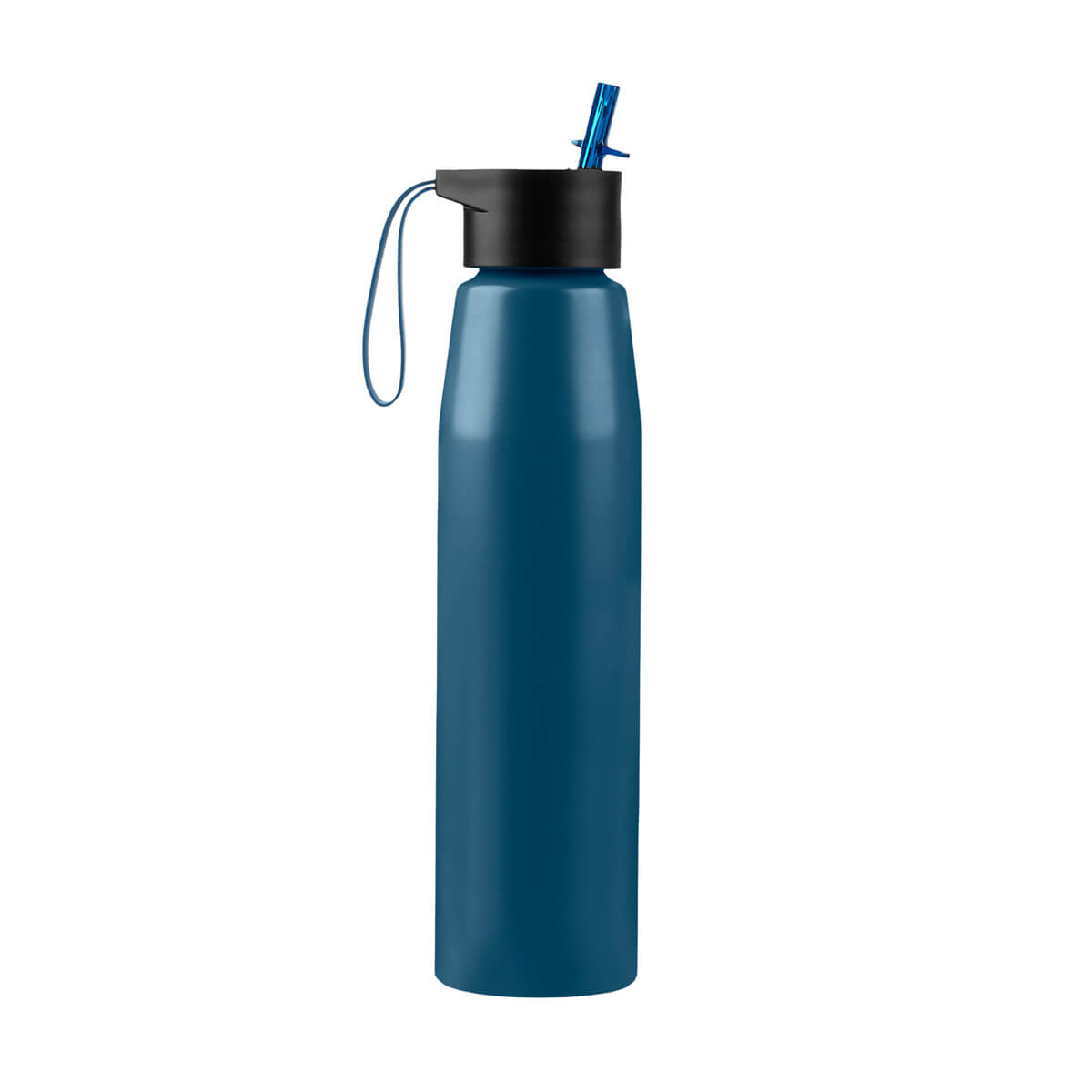 Cilindro metálico de una pared. Incluye tapa de plástico con sistema de rosca para un cierre hermético y seguro, cuenta con una boquilla plegable para beber sin riesgo de derrames, incluso estando en movimiento. Incluye popote de plástico. La tapa incluye también un asa de silicón, que permite transportarlo fácilmente a cualquier parte. Capacidad de 25 Oz. Incluye caja individual.