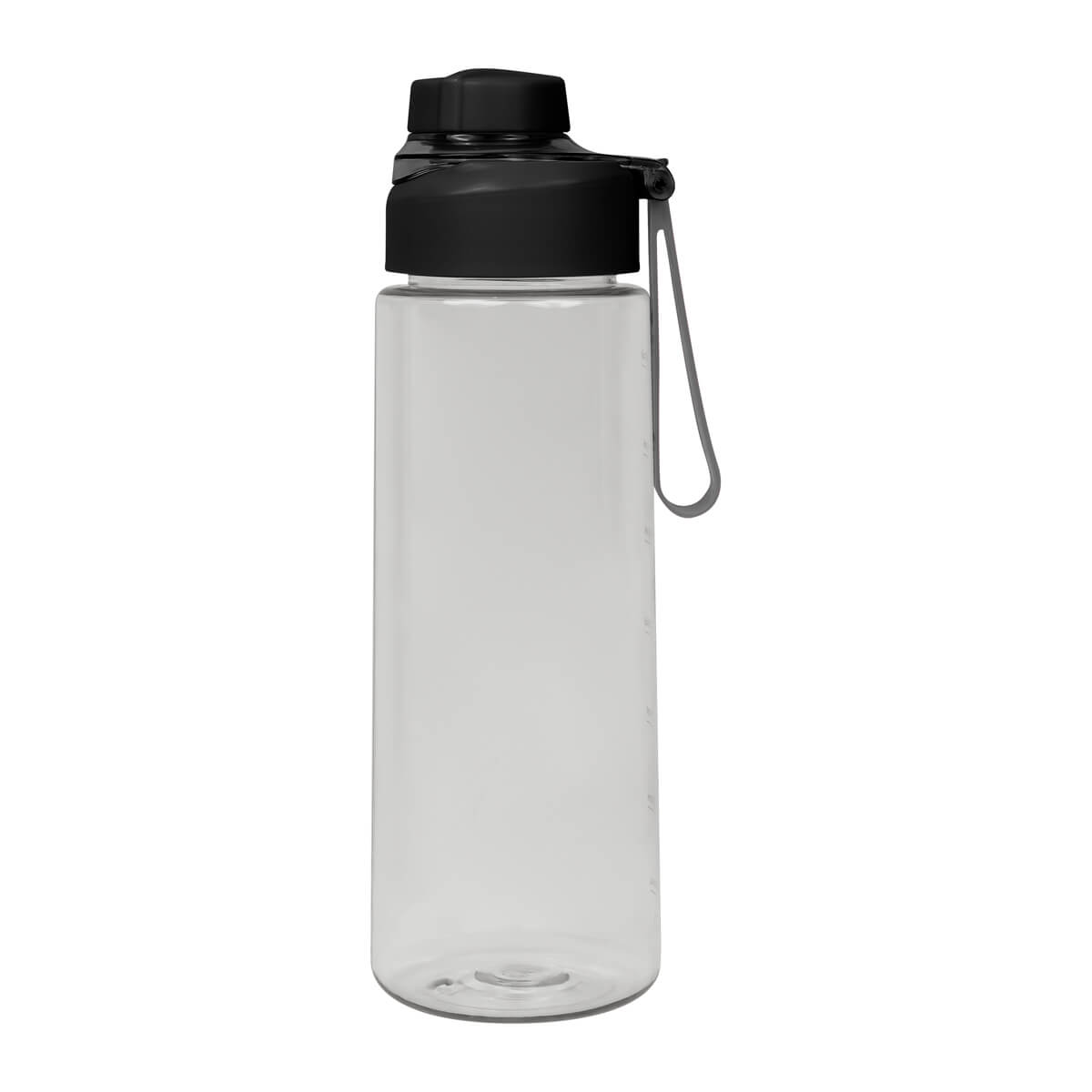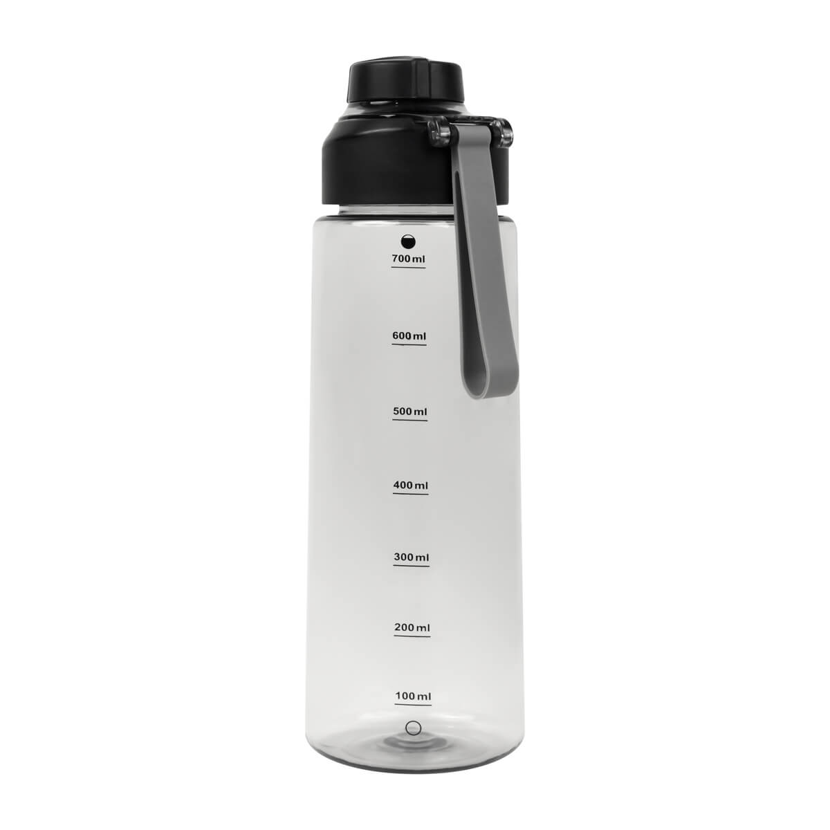 Cilindro de plástico de una pared. Tapa de plástico con sistema de rosca y sobretapa para la boquilla. Cuenta con asa de silicón para llevarlo cómodamente e indicador de mililitros. Perfecto para el día a día.