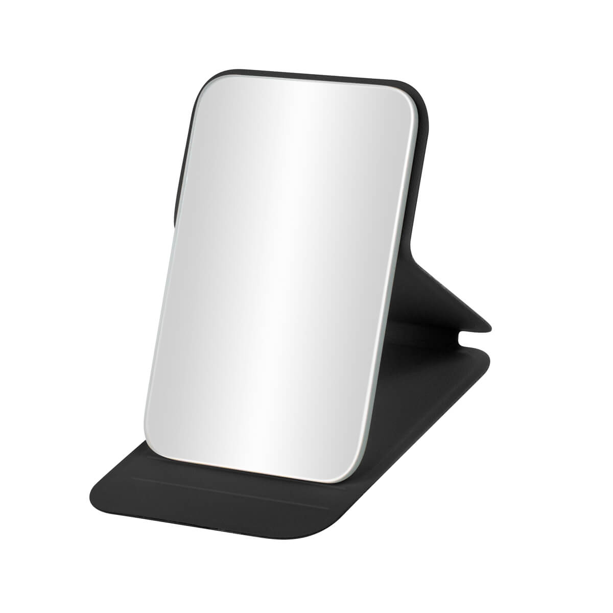 Espejo plegable con cubierta de curpiel. Cuenta con 3 posiciones de inclinación para ajustarlo a tu comodidad. Llevalo en tu bolsa o acomodalo en el tocador.