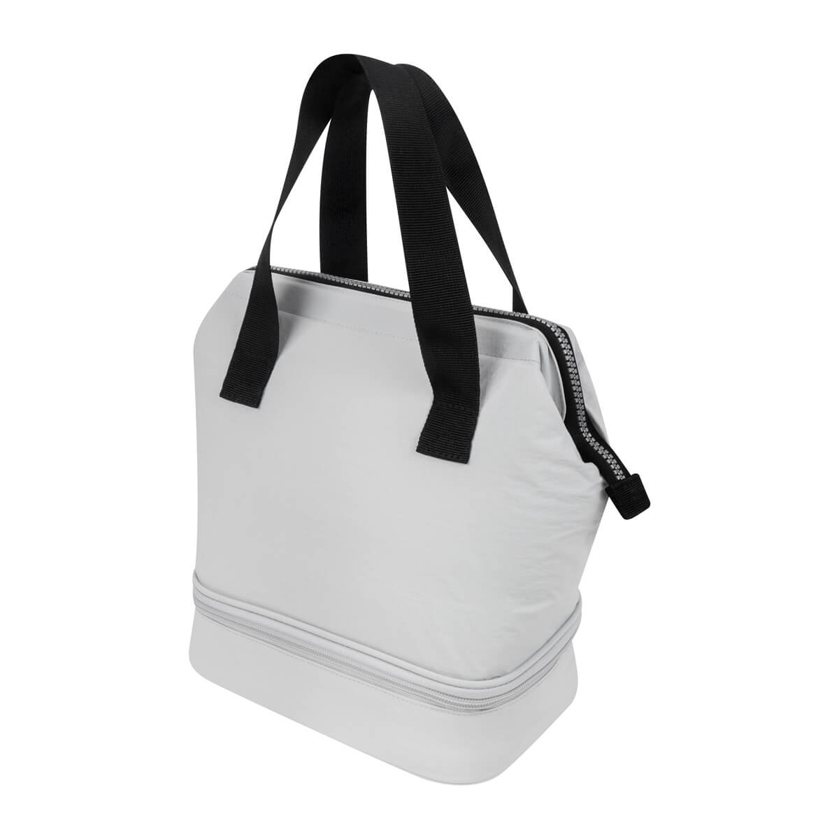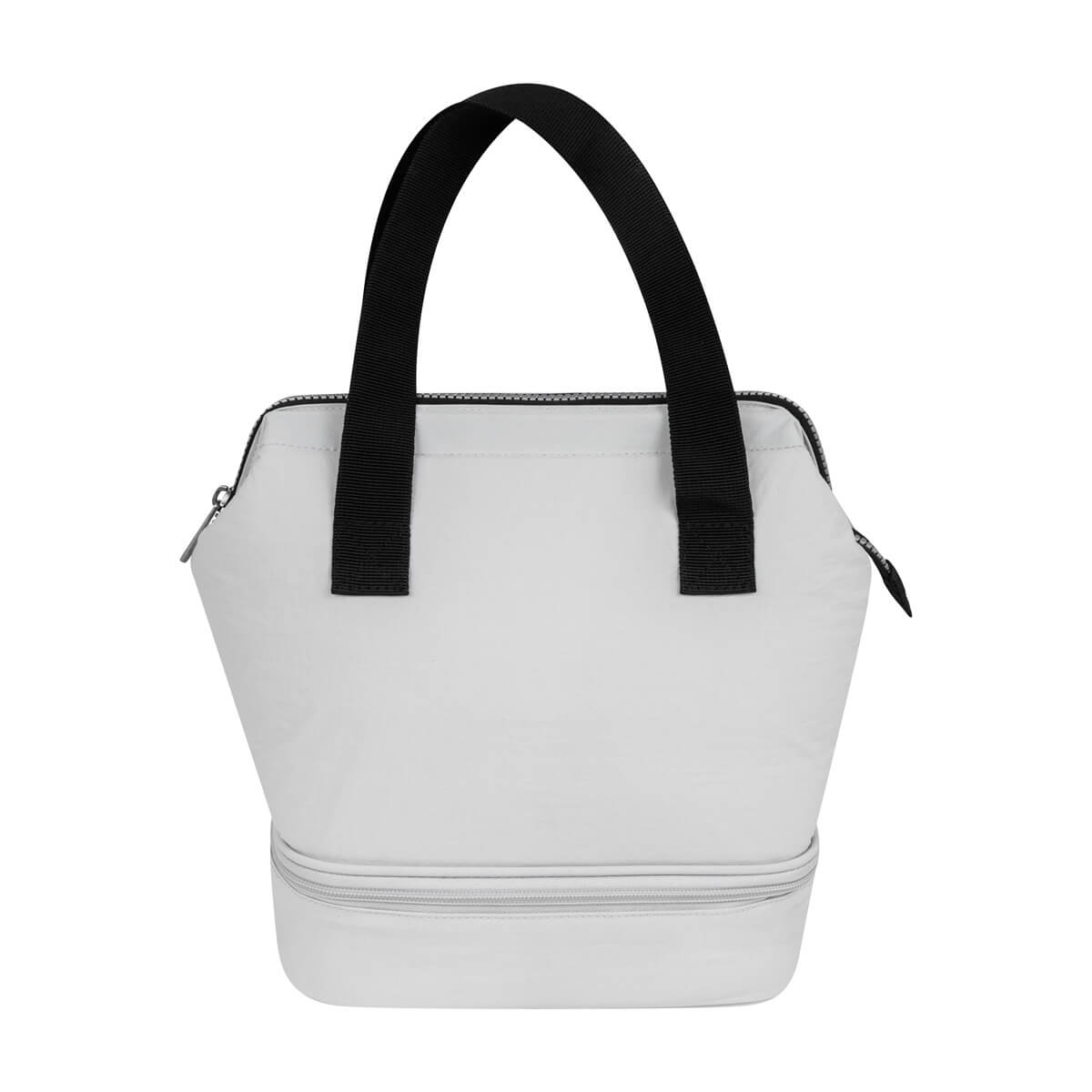 Lonchera con interior plastificado y marco interno metálico que le da mayor soporte y estabilidad. Compartimento inferior plastificado, ideal para almacenar cubiertos o alimentos compactos. Cuenta con un asa de mano de tela para transportar facilmente. Perfecta para mantener los alimentos organizados y frescos. Capacidad 6 latas.