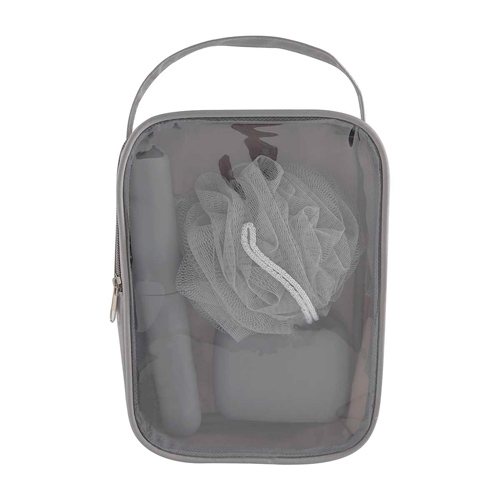 Incluye 3 accesorios de baño: esponja, estuche para jabón y cepillo de dientes.