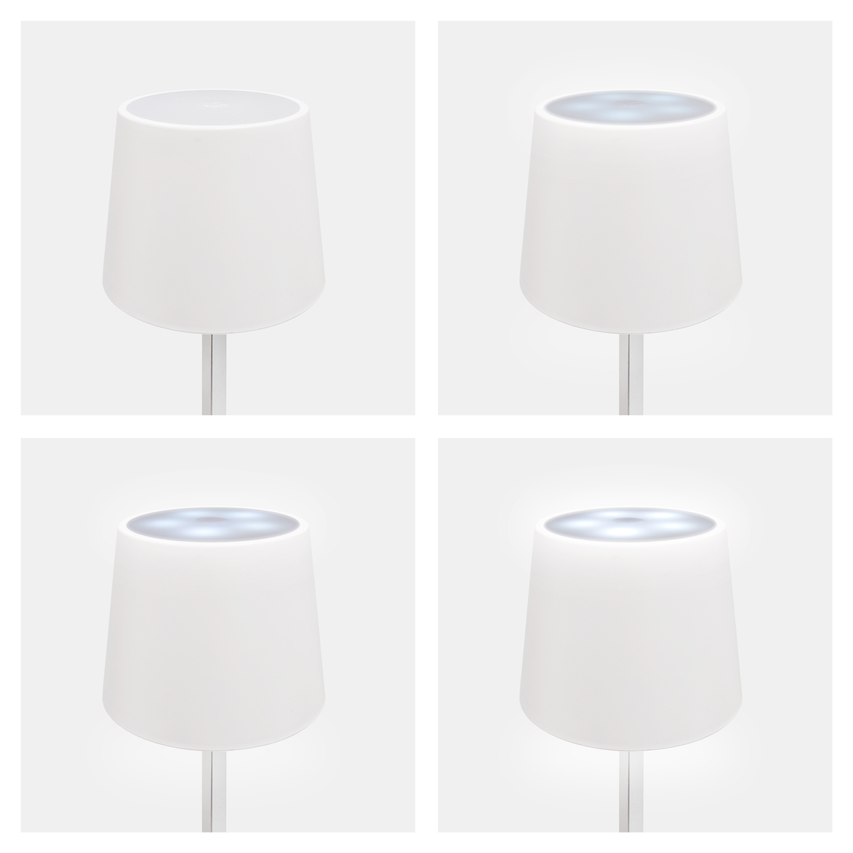 Lámpara de mesa equipada con tecnología LED de bajo consumo energético. Botón táctil con 3 intensidades de luz ajustables, puedes personalizar la iluminación según tus necesidades. Brinda una luz suave y cálida para momentos de relajación hasta una luz más brillante para tareas que requieren mayor atención. Proporciona una iluminación brillante y nítida. Incluye cable auxiliar USB. (Requiere estar conectada para funcionar.)