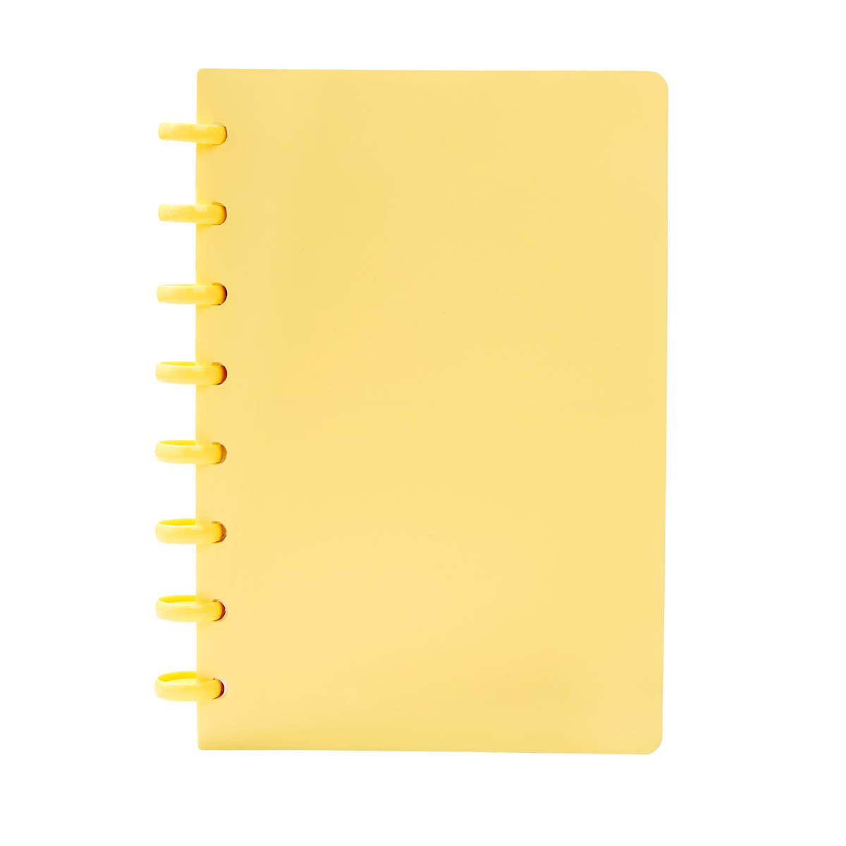 Libreta con 80 hojas a rayas. Cubierta de plástico. Incluye 8 aros de plástico que funcionan como espiral y permite la incorporación de hojas removibles, lo que facilita la reorganización de tus apuntes cuantas veces lo desees. Ideal para notas, bocetos o planificación, esta libreta combina funcionalidad y un diseño innovador.