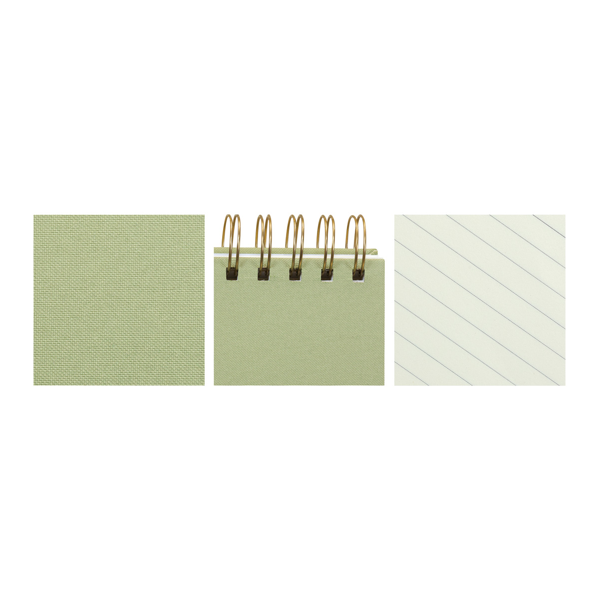 Libreta de espiral con 100 hojas a raya. Cubierta rígida de tela. Su formato vertical, hace que se distinga de las libretas tradicionales, ofreciendo una experiencia diferente y práctica al tomar notas o plasmar ideas.