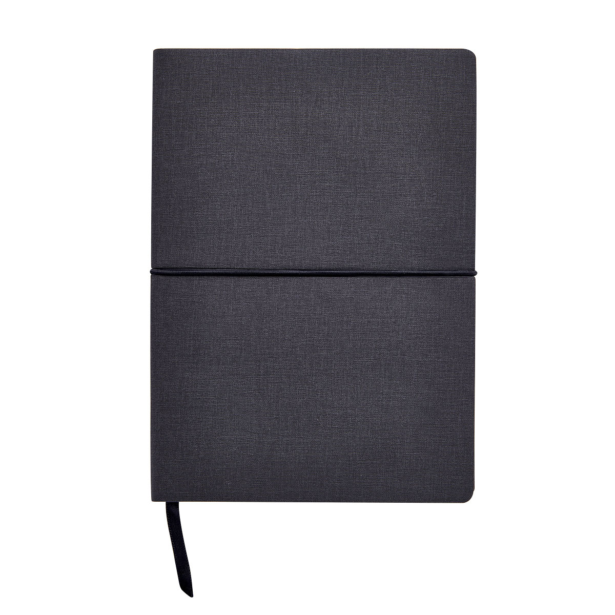 Libreta con 100 hojas de raya. Pasta flexible con elástico para cerrar y separador de hojas.