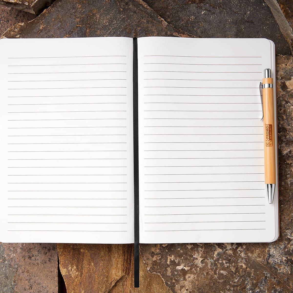 Libreta con 80 hojas de raya. Las hojas interiores están fabricadas a base de piedra natural. Este papel es resistente al agua, al desgarro y a las manchas. Incluye elástico y listón separador. Bolígrafo no incluido.