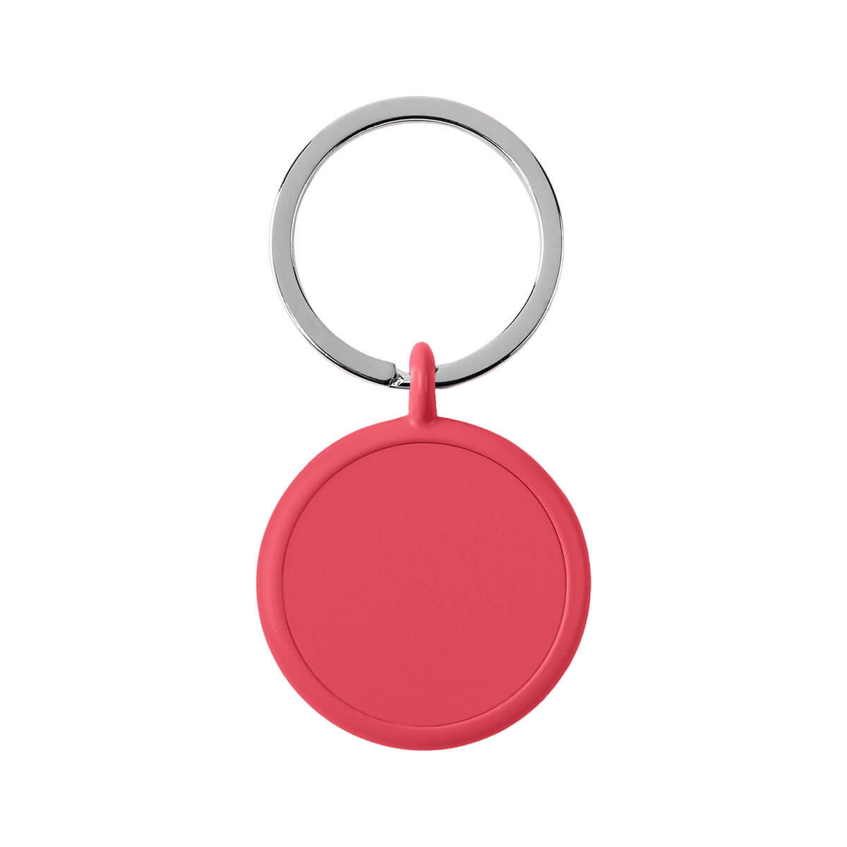 Llavero metálico circular con terminado mate.