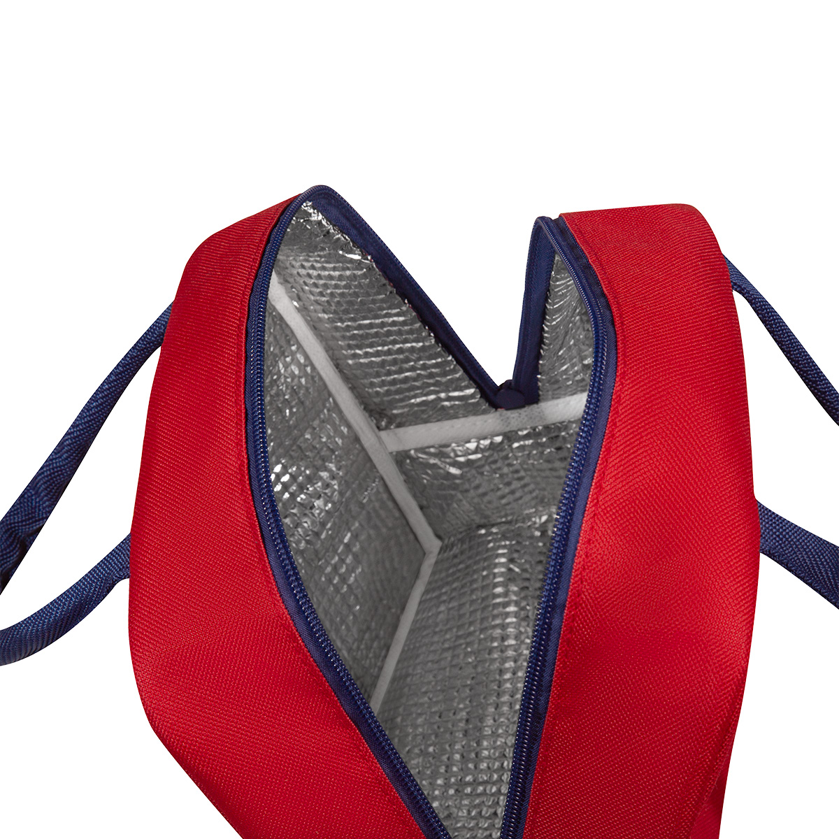 Lonchera con interior metalizado, que le permite mantener alimentos frescos y protegidos, diseño compacto y ligero. Cuenta con una bolsa frontal de rápido acceso, que facilita el almacenamiento de utensilios pequeños o snacks adicionales. Cuenta con asas reforzadas, para sostenerla con mayor comodidad. Capacidad para 6 latas.