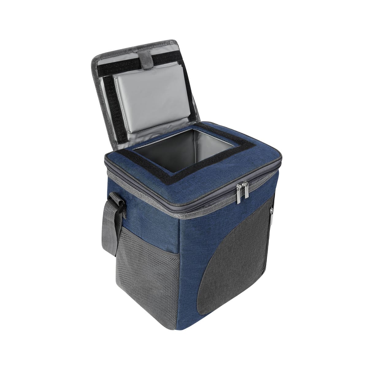 Lonchera con interior plastificado. Cuenta con bolsillo principal con cierre para almacenar tus alimentos de forma segura. Además, incluye un bolsillo frontal con cierre para llevar utensilios pequeños. Lateral con bolsillo de malla, perfecto para botellas de agua u otros artículos de acceso rápido. Asa para hombro ajustable, que permite portarla cómodamente y a la altura deseada. Para mayor practicidad, cuenta con un acceso rápido en la parte superior, que te permite acceder fácilmente a tus alimentos, sin tener que abrir toda la lonchera y un elástico ajustable, para sujetar accesorios adicionales. Capacidad para 16 latas.