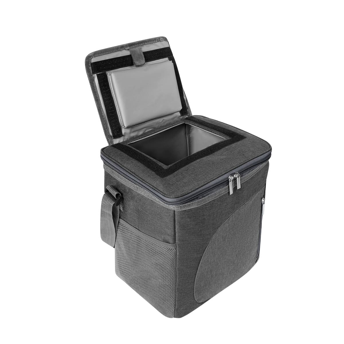 Lonchera con interior plastificado. Cuenta con bolsillo principal con cierre para almacenar tus alimentos de forma segura. Además, incluye un bolsillo frontal con cierre para llevar utensilios pequeños. Lateral con bolsillo de malla, perfecto para botellas de agua u otros artículos de acceso rápido. Asa para hombro ajustable, que permite portarla cómodamente y a la altura deseada. Para mayor practicidad, cuenta con un acceso rápido en la parte superior, que te permite acceder fácilmente a tus alimentos, sin tener que abrir toda la lonchera y un elástico ajustable, para sujetar accesorios adicionales. Capacidad para 16 latas.