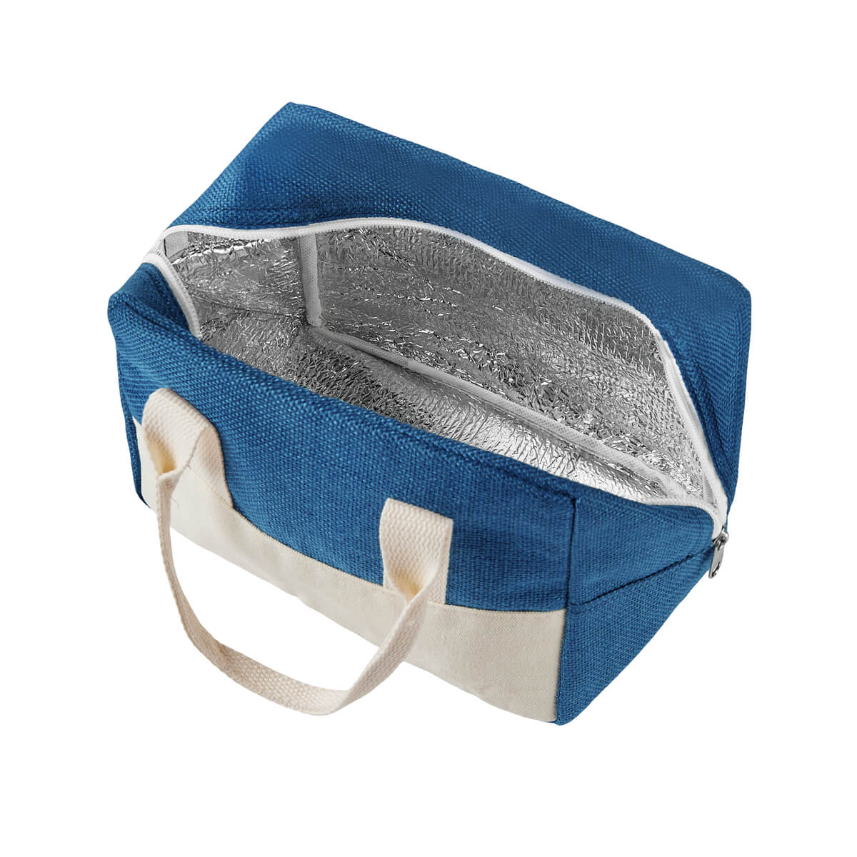 Lonchera con interior metalizado. Compartimento principal con cierre. Práctica, ligera y con un toque natural, esta lonchera es ideal para el día a día, ya que combina poliéster con detalles en algodón ecológico, una alternativa funcional con conciencia ambiental. Capacidad 6 latas.