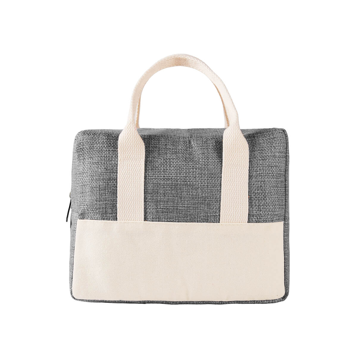Lonchera con interior metalizado. Compartimento principal con cierre. Práctica, ligera y con un toque natural, esta lonchera es ideal para el día a día, ya que combina poliéster con detalles en algodón ecológico, una alternativa funcional con conciencia ambiental. Capacidad 6 latas.