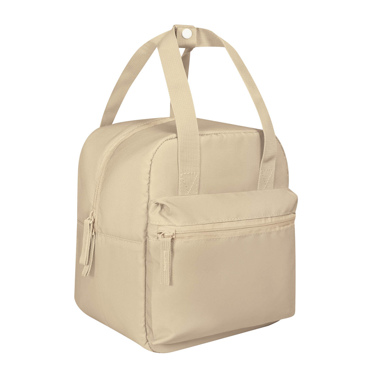 Lonchera fabricada en poliéster resistente y duradero, cuenta con un forro plastificado que facilita su limpieza. El compartimento principal, tiene un cierre y un bolsillo frontal para llevar objetos pequeños como, cubiertos, snacks o utensilios. Sus dos asas superiores facilitan su traslado y se pueden unir con un práctico broche para mayor comodidad. Con una capacidad para 9 latas, esta lonchera es ideal para llevar tus comidas y bebidas favoritas de manera segura y organizada.