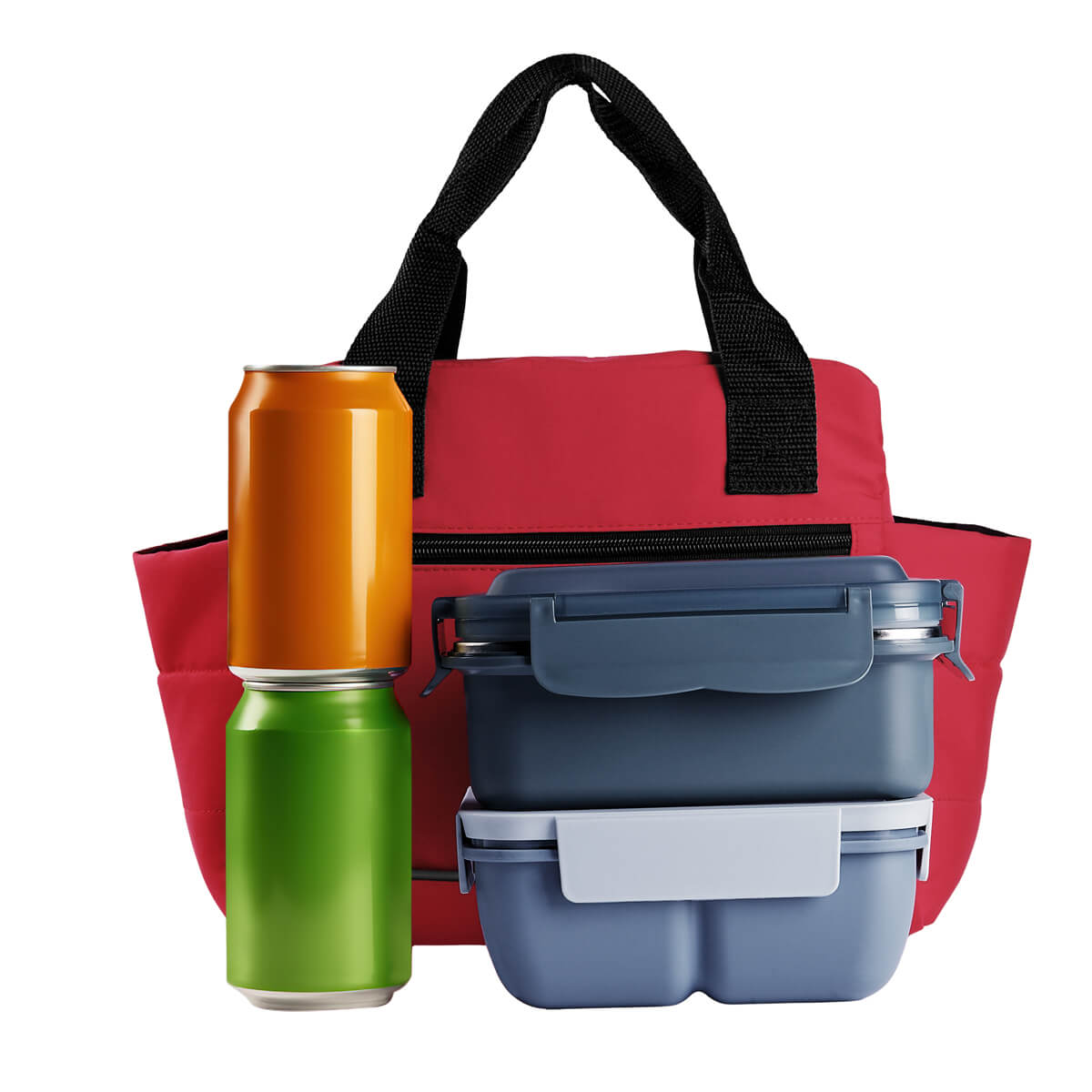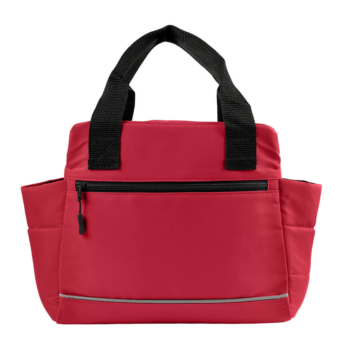 Lonchera con interior plastificado. Compartimento principal con cierre, dos bolsillos laterales y un bolsillo frontal también con cierre, ideal para llevar contigo pequeños snacks. Adicional, agregar un detalle reflejante en la parte frontal, lo que aporta un toque de diseño. Ideal para escuela u oficina, lleva tus alimentos con estilo y de forma segura. Capacidad 12 latas.