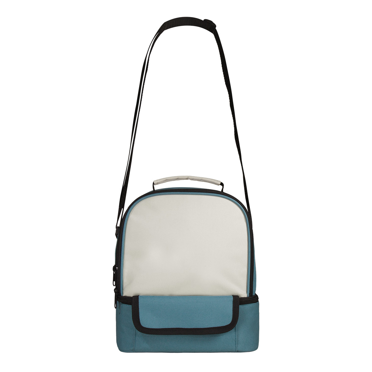 Lonchera con amplio compartimento principal de apertura frontal y práctico compartimento secundario en la parte inferior, perfecto para guardar snacks adicionales. El plastificado interior garantiza higiene y facilidad de limpieza. Incluye una bolsa frontal con velcro especialmente diseñada para guardar cubiertos, evitando que se mezclen con las demás pertenencias. Sus asas de mano y de hombro, ofrecen versatilidad para llevarla contigo. Capacidad para 12 latas.