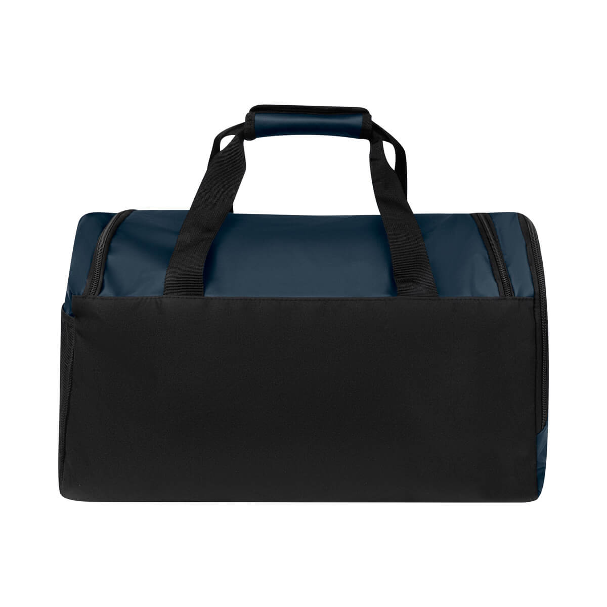 Práctica maleta con amplio compartimento principal y un bolsillo frontal con cierre. Cuenta con un compartimento lateral para calzado y un bolsillo lateral de malla para objetos pequeños. Incluye correa ajustable para hombro con broches de plástico removibles y asas de agarre superior. Perfecta para uso deportivo o viajes cortos