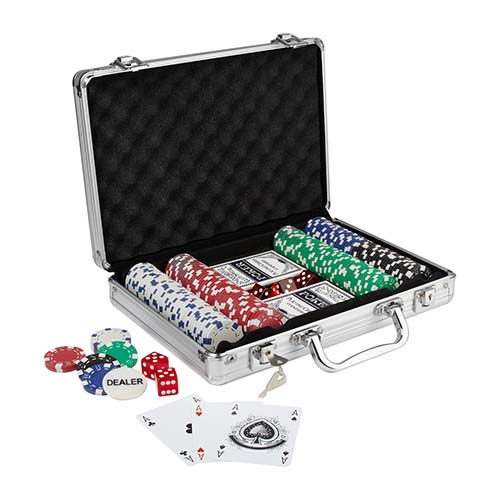 Incluye 200 fichas, 2 barajas plastificadas, 5 dados, 1 ficha de dealer y llaves.