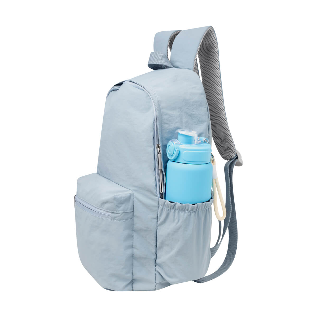 Mochila mágica con diseño multifuncional. Su bolsillo frontal te permite plegar toda la mochila, haciéndola compacta y fácil de guardar. Fabricada en nylon texturizado y suave al tacto. Cuenta con un compartimento principal con cierre, bolsillo interno y 2 bolsillos laterales con elástico. Incluye asa superior para transportar en mano y asas acolchadas con correas ajustables para mayor comodidad.