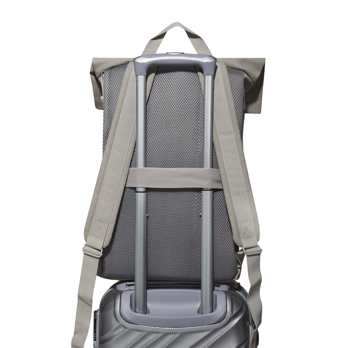 Mochila con amplia bolsa principal extensible con cerrado de solapa y correa ajustable con broche de hebilla. A un costado, cuenta con una bolsa lateral con cierre para fácil acceso al compartimento principal. Al frente cuenta con una bolsa oculta con cierre y parche de curpiel. En el interior tiene espacio para laptop de 17”, porta llaves con gancho y 2 bolsillos organizadores con elástico. En la parte posterior cuenta con tirantes ajustables, espalda acojinada y aditamento especial trasero para colocar en trolley para su mayor comodidad.