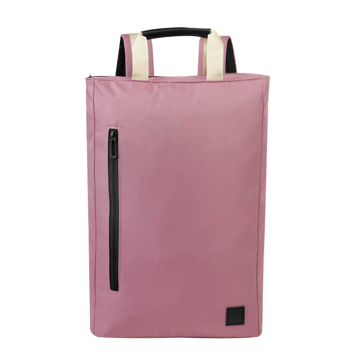 Mochila estilo casual. Compartimento principal con cierre y separador para laptop de hasta 14”. En la parte frontal dispone de un bolsillo con cierre vertical que lo hace funcional para llevar accesorios más pequeños y además le aporta un toque de diseño. Incluye dos asas superiores con recubrimiento de curpiel para mayor comodidad en su transportación. Cuenta con asas ajustables para hombro y banda trasera para utilizar en trolley, también funciona para guardar sus asas y utilizar como bolsa.