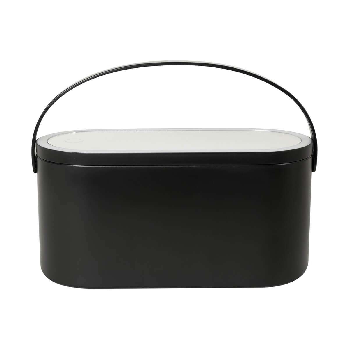 Organizador de cosméticos con espejo integrado. Su tapa incluye un espejo con luz LED ajustable a 3 intensidades, se activa presionando por 5 segundos el botón touch. El diseño versátil permite ajustar el espejo en diferentes posiciones, incluso desmontarlo y utilizarlo de manera individual, brindando comodidad y precisión al maquillarte. Compacto y elegante, es el accesorio ideal para mantener tus accesorios organizados. Batería recargable e incluye cable con conexión USB-C y caja individual.