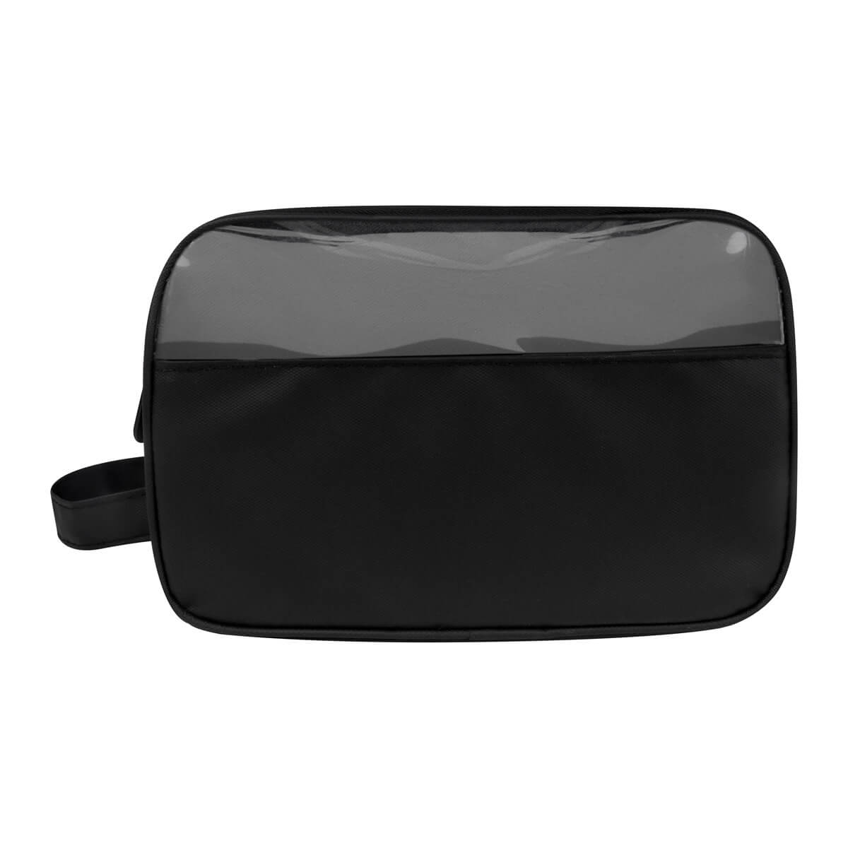 Neceser de poliéster resistente al agua. Incluye una mica PVC en el compartimento frontal para una fácil visualización de su contenido. Dos compartimentos amplios y múltiples bolsillos internos para mantener todo perfectamente ordenado. Su asa lateral facilita el transporte, mientras que los pullers de rubber aseguran un cierre cómodo y seguro. Ideal para viajes, gimnasio o uso diario.