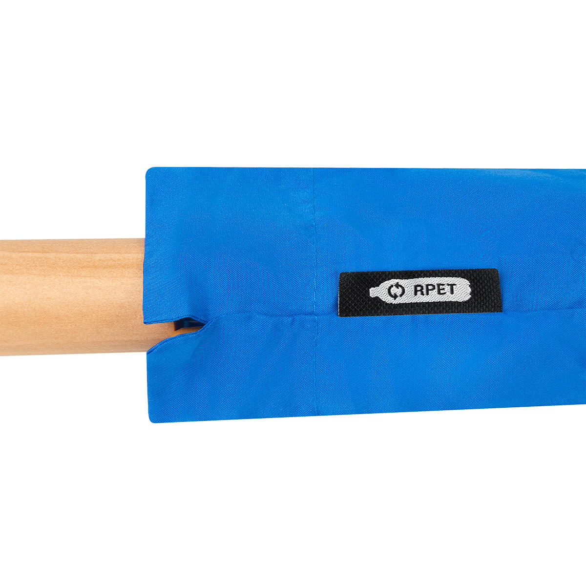 Paraguas de 8 paneles con apertura automática. fabricado en plástico reciclado (RPET). Cuenta con mango y punteras de madera. Incluye funda protectora.