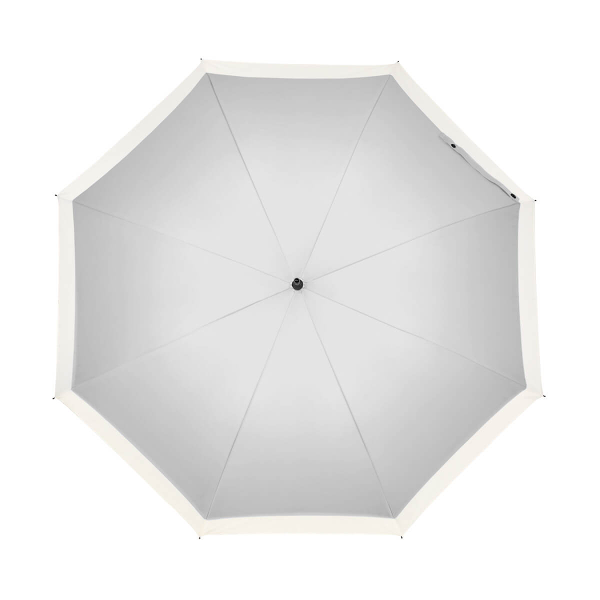 Paraguas de 8 paneles en diseño bitono con apertura automática. Su mango octagonal de plástico ofrece un agarre cómodo y único. Mango de plástico