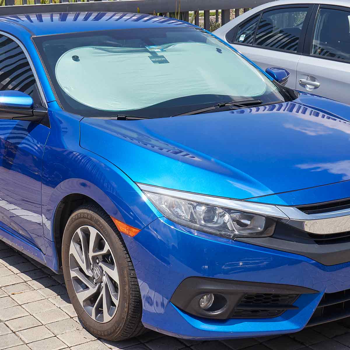 Parasol plegable con 2 ventosas para una instalación rápida y fácil.